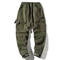 Best 2021 new arrival top fashion cotton cargo pants pockets full length men casual zipper pocket velcro leggings overalls Trousers and You will save 31% or US $158.01 today