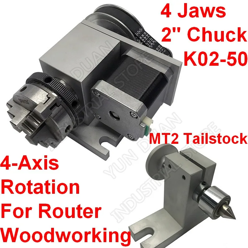 Best Sanou K02-50 2inch Chuck 4th 4 Axis Rotary & MT2 Tailstock CNC Dividing Head A Axis Rotation 4 Jaws for Router Wood Working and You will save 18% or US $130.26 today