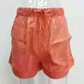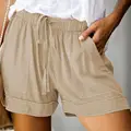 Women High Waist Pockets Bottoms Solid Color Wide Leg Elastic Waist Loose Shorts Drawstring Thin Skin-friendly Pants for Summer