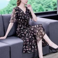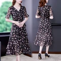 Best 2021 New Summer Women V-Neck Speaker Sleeve Floral Chiffon Long Dress Sweet Ruffles Irregular Hem Mermaid Dress and You will save 30% or US $20.22 today