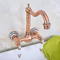Best Antique Red Copper Brass Bathroom Kitchen Sink Faucet Mixer Tap Swivel Spout Wall Mounted Dual Ceramic Flower Levers Base mnf954 and You will save 58% or US $46.2 today