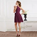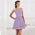 Simple Pleat Mini Bridesmaid Dress One Shoulder Sleeveless Chiffon Pretty Girl Skirt Formal Weddings Party At Night Ball Gown