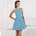 Best Simple Pleat Mini Bridesmaid Dress One Shoulder Sleeveless Chiffon Pretty Girl Skirt Formal Weddings Party At Night Ball Gown and You will save 20% or US $56.96 today